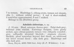 Meyrick (1936: 49) beschrieb seine "Asbolistis chthoniopa" nach einem einzelnen, von E.P. Wiltshire gesammelten Männchen von Rayat im Irak.