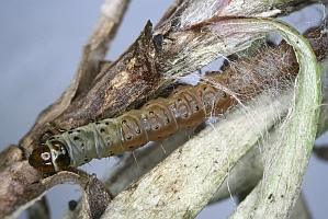 2: Schottland, Aberdeenshire, Glen Callater, Raupe an Katzenpfötchen (Antennaria dioica) 7. Juni 2017, e.l. 14. Juli 2017 (leg., cult., det. & Foto: Stella D. Beavan & Bob Heckford)