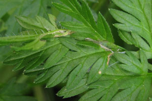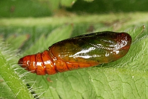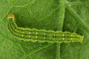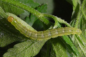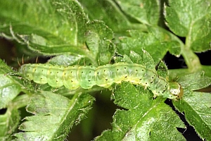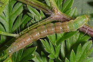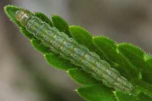 Körper wie bei A. heracliana: grün mit schwarzen Punktwarzen. Die dunkleren Rücken- und Nebenrückenlinien sind aber meist deutlicher als bei A. heracliana.(Text: Rudolf Bryner)