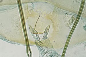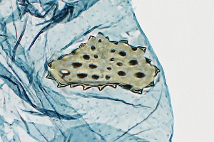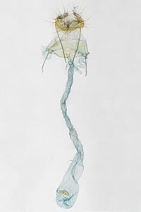 Die erwachsenen Raupen von Agonopterix ciliella und A. heracliana lassen sich an Kopf und Nackenschild zuverlässig unterscheiden.