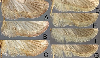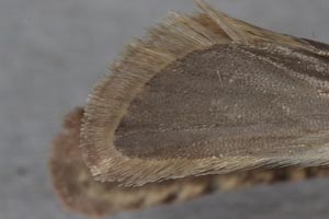Vergleich der Hinterflügel (links Agonopterix ciliella, rechts A. heracliana) und Besprechung der Merkmale siehe [Forum 2]