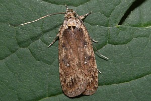 Nackenplatte bräunlich-grün mit zwei schwarzen Punkten am Hinterrand. Auf beiden Seiten weitere schwarze Sprenkel (Raupe 1), die manchmal zu einer schmalen, dunkelbraunen oder schwarzen Linie zusammenfliessen können (Raupe 2). Die Nackenplatte ist aber an den Seiten niemals so breit verdunkelt wie bei A. ciliella.