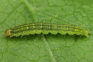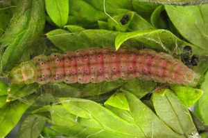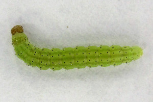 Körper wie bei A. ciliella: grün mit schwarzen Punktwarzen. Die dunkleren Rücken- und Nebenrückenlinien sind nur bei frisch gehäuteten Raupen deutlich ausgeprägt, sonst sehr verwaschen bis erloschen.