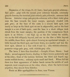- Stainton, H. T. (1870): The natural history of the Tineina 12: [I-VII], 1-259, pl. I-VIII. London (John van Voorst) – Paris (Deyrolle) – Berlin (E. S. Mittler und Sohn). — Digitalisat auf archive.org: [238-247], [pl. VIII fig. 2].