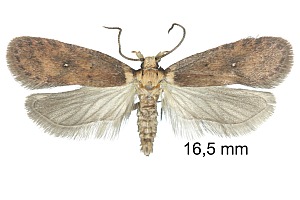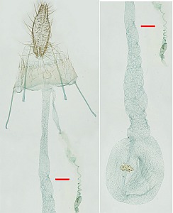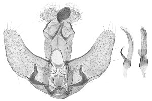 1: Präparat eines nicht abgebildeten ♂ (Paratype), Österreich, Niederösterreich, Mödling, Raupe an Hirschwurz (Peucedanum cervaria) 22. Mai 2011, e.l. 16. Juni 2011, leg., cult., Präparation & Mikrofoto Peter Buchner
