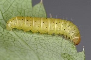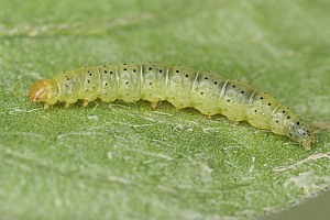 1-2: zwei Individuen, 8 bzw. 10 mm, Österreich, Niederösterreich, Hundsheim-Hexenberg, leg. Raupengespinst an Berg-Haarstrang (Peucedanum oreoselinum) 10. Mai 2008 (Fotos vom 23. Mai 2008: Peter Buchner) (Die Raupen 1+2 waren bis 6. Februar 2011 fehlbestimmt unter Agonopterix selini eingestellt)Forum