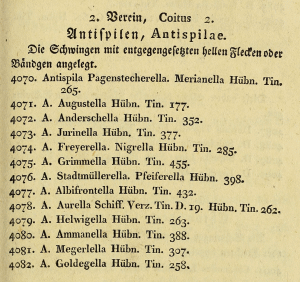 Hübner verzichtete in seinem „Verzeichniß bekannter Schmettlinge“ auf explizite Angaben zur Etymologie.