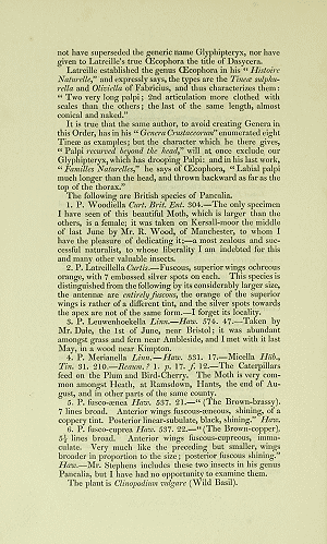- Erstbeschreibung: Curtis, J. (1823-1840): British Entomology; Being Illustrations and Descriptions of the Genera of Insects Found in Great Britain and Ireland: Containing Coloured Figures from Nature of the Most Rare and Beautiful Species, and in Many Instances of the Plants upon which they are Found. Vol VI. Lepidoptera, Part II. — [Not paginated]. London (E. Ellis & Co.).