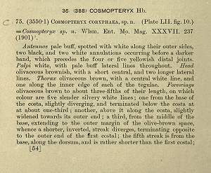 - Cosmopteryx coryphaea Walsingham, 1908 [Originalkombination]