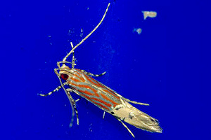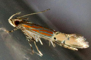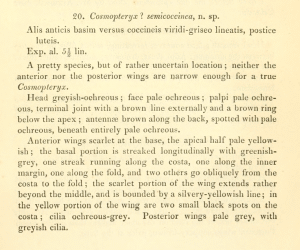 - Cosmopteryx semicoccinea Stainton, 1859 [Originalkombination]