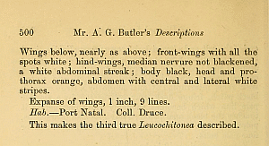 - Erstbeschreibung: Butler, A. G. (1870): Descriptions of some new Diurnal Lepidoptera, chiefly Hesperiidae. — The Transactions of the Entomological Society of London for the Year 1870 (4): 485-520.