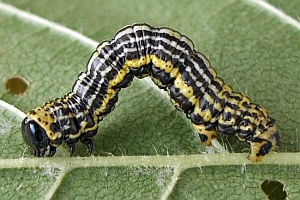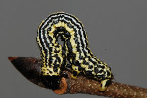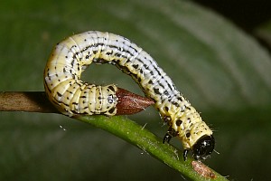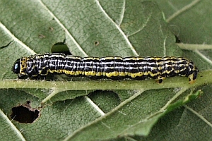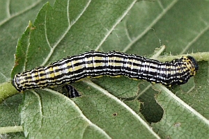 1: Deutschland, Brandenburg, Fläming, Raben, Erlenwald mit Traubenkirschenunterwuchs, Raupen an Prunus padus, 2. September 2008 (Freilandfoto: Stefan Ratering), det. Stefan RateringForum