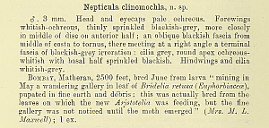 - Nepticula clinomochla Meyrick, 1934 [Originalkombination]