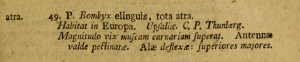 - Phalaena (Bombyx) atra Linnaeus, 1767 [Originalkombination]