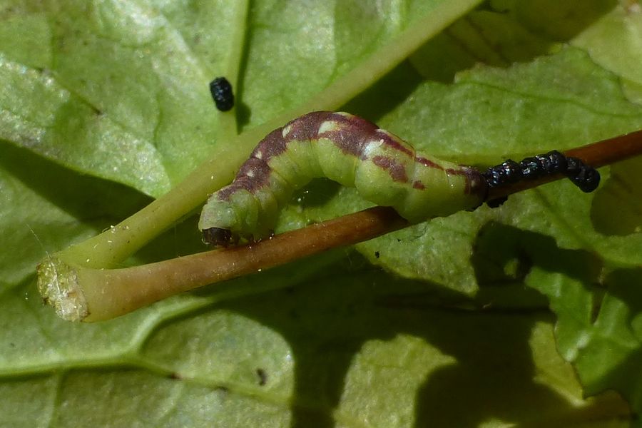 Da bei zu hohem Raupenbesatz die Früchte einer Pflanze oft vollständig ausgehöhlt sind, weichen die extrem bewegungsfaulen Raupen manchmal auch auf Blätter derselben Pflanze aus. Und dies, obwohl in weniger als 1 m Abstand noch unbesetzte Pflanzen mit frischen Früchten stehen.