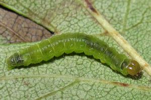 Disqué (1905: 211) berichtet aus eigenen Erfahrungen in der Pfalz zur Raupe: "R. 5—8 an Rosaceen und ganz besonders an Schlehen. R. einfarbig gelblich mit lilassbraunem Kopfe."