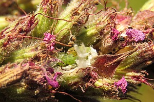 Schütze (1931) schrieb dazu: "Zwischen den Blüten und Gipfelblättern in zwei bis drei Generationen. In den Blütenähren macht sie lange geschlängelte, mit Gespinst ausgekleidete Gänge und nährt sich am liebsten von Kelch- und Deckblättern sowie von der Ährenachse (Kaltenbach). Nordwestdeutschland." Ebenfalls aus Nordwestdeutschland berichtet Wegner (2015) über den Fund zahlreicher Raupen am 15.08.2013 in den Samenständen des Blutweiderichs.
