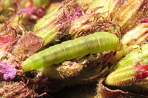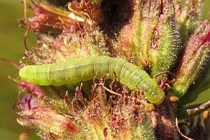Kennel (1908: 100) teilte mit: "Die Raupe ist gelblichgrün, Dorsal- und Subdorsallinien dunkler, Kopf bräunlich; sie lebt in den Blüten und Blattspitzen von Lythrum salicaria in 3 Generationen: im Mai, Juli und September bis Oktober; der Schmetterling erscheint im Juni, August und Oktober bis November; Exemplare der letzten Generation überwintern."