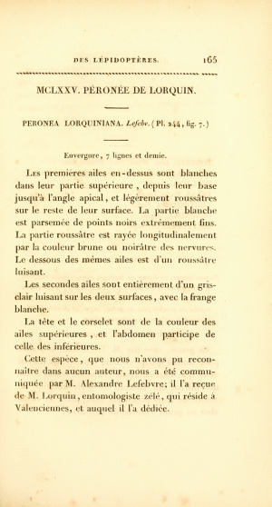 Duponchel [1835] widmete die Art dem Entomologen Lorquin aus Valenciennes.