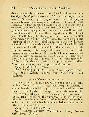 - Erstbeschreibung: Walsingham (1900): Asiatic Tortricidae. — The Annals and Magazine of Natural History, Including Zoology, Botany, and Geology. Seventh series 5: 368-386, 451-469. London (Taylor and Francis).