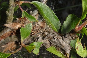 Angaben zu Sorbus aucuparia ist mit größter Vorsicht zu begegnen, da hier - wenn die Raupen nicht abgebildet oder beschrieben sind - Verwechslung der geschlüpften Falter mit denen von Acrobasis advenella nahe liegt. Verlässliche Primärangaben sind mir hier nicht bekannt.
