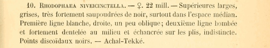 - Rhodophaea niveicinctella Ragonot, 1887 [Originalkombination]