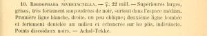 Ebenso wie die benachbarten Jahrgänge ist Band 7 der sechsten Serie der Annales de la Société entomologique de France in vier Heften erschienen. Im Band 7 ist die Zuordnung der darin publizierten Arbeiten zu den einzelnen Heften schwierig, weil im digitalisierten Exemplar des Bandes Inhaltsverzeichnisse fehlen. So bleiben als Anhaltspunkte nur die Datierungen der Drucklagen und der Titelblätter der vier Hefte. Die Arbeit von Ragonot beginnt auf der ersten Seite der auf « (1887) » datierten Drucklage 15 [Digitalisat auf biodiversitylibrary.org]. Außerdem steht dort in der Fußzeile das Datum « Décembre 1887 ». Das Titelblatt von Heft 3 [Digitalisat a.a.O.] trägt das Datum 28. Dezember 1887; die Arbeit von Ragnot beginnt folglich im Heft 3 und endet auch in diesem, weil erst Seite 369 (= Beginn der Lage 24) auf das Folgejahr 1888 datiert ist; Lage 23 ist noch mit « (1887) » bedruckt.