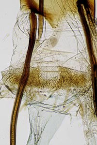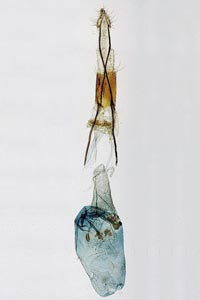 Acrobasis tumidana: Anellus V-förmig, die zwei gegenüberliegenden Strukturen weniger geschwungen bzw. annähernd gerade, vergleiche hier [mothdissection]