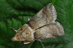 Die beiden Arten Acrobasis repandana und Acrobasis tumidana unterscheiden sich im Schuppenwulst, der auf der inneren Querbinde liegt, sowie durch einen kleinen Bereich mit aufgestellten Schuppen im Bereich der Flügelwurzel. [Helmut Kolbeck]