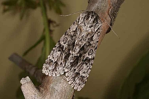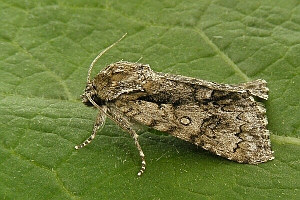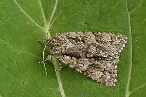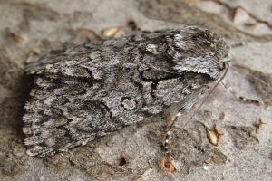 Acronicta aceris hat eine weiße Hinterflügelgrundfarbe, bei Acronicta auricoma sind die Hinterflügel braun. Das zusammen mit der Größe ist eigentlich immer zur Unterscheidung ausreichend. Hat man keine Möglichkeit, die Hinterflügel anzusehen, dann bleiben nur die Vorderflügelmerkmale, und die sind etwas subtiler: In der Färbung ist Acronicta aceris monotoner, die Querlinien nicht so dunkel angelegt wie manchmal bei Acronicta auricoma, dadurch wirkt A. aceris tendenziell eintöniger und A. auricoma tendenziell kontrastreicher. Die Grundfarbe ist bei A. aceris reiner grau, bei A. auricoma oft ins Bräunlichgraue gehend. Die schwarzen Längszeichnungen (der Basalstrich und der Strich im Saumfeld) sind bei A. aceris im Durchschnitt viel schwächer ausgeprägt, bei A. auricoma dagegen oft kräftig und gern auch noch von brauner Beschuppung umgeben. Die Ringmakel trägt bei A. auricoma oft (nicht immer) einen schwarzen Mittelpunkt, bei A. aceris nur sehr selten. Text Axel Steiner im [Forum].