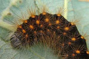 Aurum: Gold, coma: Haar, von den gelben Haaren der Raupe.