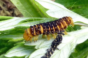 Die Raupe ist polyphag. Sie lebt an verschiedenen Laubsträuchern, frisst aber auch krautige Pflanzen.