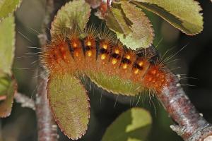 Das Hauptmerkmal zur Unterscheidung der beiden Arten ist die unterschiedliche Größe. Acronicta aceris ist durchnittlich größer und oft auch ein klein wenig spitzflügeliger. Dazu muß man beide Arten mal gesehen (oder in einer Sammlung verglichen) haben. Es gibt aber auch kleine A. aceris und große Acronicta auricoma, dann ist der Unterschied nicht mehr so auffallend.