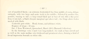 • Original description: Warren, W. (1898): New Species and Genera of the Families Drepanulidae, Thyrididae, Uraniidae, Epiplemidae, and Geometridae from the Old-World Regions. — Novitates Zoologicae 5 (2): 221-258.