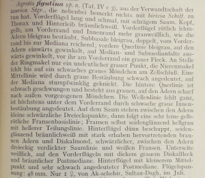 - Erstbeschreibung: Draudt, M. (1936): Neue Arten und Formen von Noctuiden. — Entomologische Rundschau 53: 457-462, 465-471, 490-493, pl. V.