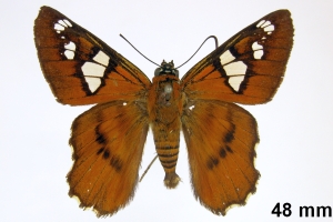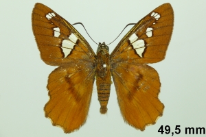 "The taxonomic status of this and Agara perissodora is questionable. The only known syntype of Myscelus perissodora is from Mexico: Veracruz (Misantla) and has the outer margin of the ventral hindwing very similar to that of A. pegasus: the discal band is not separated from the dark margin. Specimens of A. perissodora from Costa Rica have the outer margin of the ventral hindwing with the discal brown band separated from the outer dark margin. The genitalia of both taxa are similar. We have only examined a few specimens in collections and few localities are known for either species (misidentifications are possible)." Mielke, O. H. H., Brockmann, E. & C. G. C. Mielke (2022)
