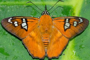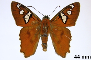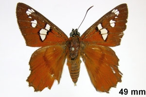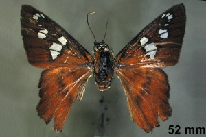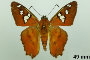 "The taxonomic status of Agara perissodora and Agara pegasus is questionable. The only known syntype of Myscelus perissodora is from Mexico: Veracruz (Misantla) and has the outer margin of the ventral hindwing very similar to that of A. pegasus: the discal band is not separated from the dark margin. Specimens of A. perissodora from Costa Rica have the outer margin of the ventral hindwing with the discal brown band separated from the outer dark margin. The genitalia of both taxa are similar. We have only examined a few specimens in collections and few localities are known for either species (misidentifications are possible)." Mielke, O. H. H., Brockmann, E. & C. G. C. Mielke (2022)