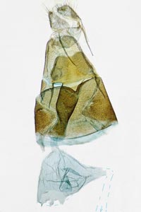 Hinweis: Fazekas & Edmunds (2023: 28-29) zeigen Farbfotos der Falter und Genitalien beider Geschlechter. Sie erläutern dazu: "Remarks. According to Arenberger (1996) due to the extremely poor state of preservation of all specimens examined, a more exact description of the external characteristics of this species is not possible. However, there is no doubt about the species legitimacy of Agdistis bigoti because the genital apparatus in both sexes is unmistakable. The male genital is very conspicuous by the forked process of the 8th sternite. Only Singularia walsinghami (Fernald, 1898) and Agdistis bifurcatus (Agenjo, 1952) have similar sternite cones, but in both these are forked after 1/2 of their length. In A. bigoti, from the base of two arms, a further two arms are present. A. bigoti is another species of the „frankeniae” group. This is confirmed by their female genital apparatus. Antrum in ventral view caudally overly broad, orally tapering abruptly after 3/4 abruptly tapering, strongly sclerotized. The membranous corpus bursae are only about 1/4 longer than the antrum. In the paper, detailed photos of the male and female reproductive organs are shown. Highlighting the most important specific markers. The wing habitus is also shown, as no similar representation is known in previous publications."