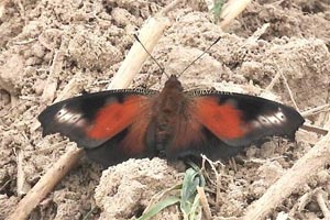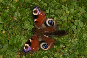 Im Spätsommer ernährt sich A. io gern auch von alkoholisch gärenden Früchten — hier auf Bild 1 in Gesellschaft mit Nymphalis antiopa.