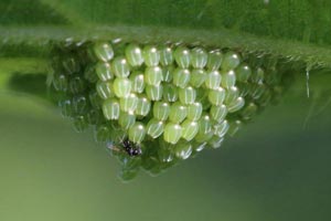 Mit sehr großem Abstand wichtigste Eiablagepflanze in ganz Europa ist die Große Brennnessel (Urtica dioica). In der Urlandschaft könnte entlang der großen Ströme auch die nahe verwandte Ufer-Brennnessel (Urtica subinermis [= Urtica dioica ssp. subinermis]) eine gewisse Rolle gespielt haben, wo vorhanden auch die Röhricht-Brennnessel (Urtica kioviensis) - zu beiden Arten liegt aber bisher keine einzige konkrete Meldung über Eiablagebeobachtungen oder Raupenfunde vor. Auch die häufige Kleine Brennnessel (Urtica urens) scheint, auch wenn es Literaturangaben gibt, zumindest im Freiland überhaupt nicht belegt zu werden, ebensowenig die Pillen-Brennnessel (Urtica pilulifera), zu der ich keine Daten kenne. Von mir nicht überprüft werden konnten bisher Angaben aus Asien, die die Nutzung von Urtica angustifolia (Schmalblättrige Brennnessel) in Japan und Urtica cannabina (Sibirische Hanfnessel) im asiatischen Teil Russlands betreffen - beides ist gut möglich, in beiden Gebieten gibt es aber auch Urtica dioica. Zu erwarten wäre auch eine Nutzung von Urtica atrovirens auf Korsika und Sardinien - doch entsprechende Meldungen scheint es nicht zu geben.
