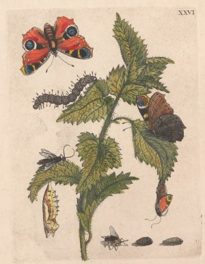 - Bezug einer Indikation in der Erstbeschreibung: Merian, M. S. (1730): DE EUROPISCHE INSECTEN, Naauwkeurig onderzogt, na 't leven geschildert, en in print gebragt door MARIA SIBILLA MERIAN: Met een korte Beschryving, waar in door haar gehandelt word van der Rupsen begin, Voedzel en wonderbare Verandering, EN OOK VERTOONT WORD De Oorspronk, Spys en Gestalt-verwisseling, de Tyd, Plaats en Eigenschappen der Rupzen [sic], Uiltjes, Vliegen en andere diergelyke bloedeloose Beesjes. HIER IS NOG BYGEVOEGT Een naauwkeurige Beschryving van de Planten, in dit Werk voorkomende; en de Uitlegging van agtien nieuwe Plaaten, door dezelve MARIA SIBILLA MERIAN geteekent, en die men na haar dood gevonden heeft. In 't Frans beschreeven door J. MARRET, Medicinae Doctor, En door een voornaam Liefhebber in 't Nederduits vertaalt: Frontispiz, Schmutztitel, Titel, 1-84, pl. I-CLXXXIV. Amsterdam (J. F. Bernard). — Digitalisat auf archive.org: [pl. XXVI]