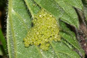 Mit sehr großem Abstand wichtigste Eiablagepflanze in ganz Europa ist die Große Brennnessel (Urtica dioica). In der Urlandschaft könnte entlang der großen Ströme auch die nahe verwandte Ufer-Brennnessel (Urtica subinermis [= Urtica dioica ssp. subinermis]) eine gewisse Rolle gespielt haben, wo vorhanden auch die Röhricht-Brennnessel (Urtica kioviensis) - zu beiden Arten liegt aber bisher keine einzige konkrete Meldung über Eiablagebeobachtungen oder Raupenfunde vor. Auch die häufige Kleine Brennnessel (Urtica urens) scheint, auch wenn es Literaturangaben gibt, zumindest im Freiland überhaupt nicht belegt zu werden, ebensowenig die Pillen-Brennnessel (Urtica pilulifera), zu der ich keine Daten kenne. Von mir nicht überprüft werden konnten bisher Angaben aus Asien, die die Nutzung von Urtica angustifolia (Schmalblättrige Brennnessel) in Japan und Urtica cannabina (Sibirische Hanfnessel) im asiatischen Teil Russlands betreffen - beides ist gut möglich, in beiden Gebieten gibt es aber auch Urtica dioica. Zu erwarten wäre auch eine Nutzung von Urtica atrovirens auf Korsika und Sardinien - doch entsprechende Meldungen scheint es nicht zu geben.