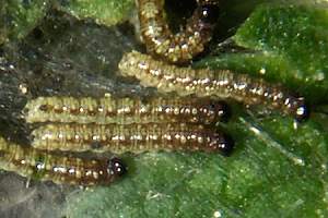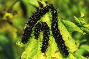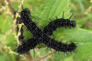 Eine gewisse Ähnlichkeit haben auch schwarze Raupen von V. atalanta. Diese sind jedoch stets deutlich gedrungener. Lange nicht so schlank, wie die A. io-Raupe. Und sie leben einzeln in Blatttüten eingesponnen