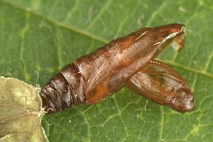 2: 8 mm, halb erwachsen, Österreich, Niederösterreich, Waschberg bei Tulln, leg. Raupe an Elsässer Haarstrang (Peucedanum alsaticum) als Jungraupe (Eiraupe?) 3. April 2012, Foto vom 12. Mai 2012 (leg., cult., det. durch Zucht & Foto Peter Buchner)