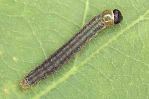 Hinweis: Bei älteren Raupen treten die dunklen Körperpartien deutlicher hervor, es besteht aber eine beträchtliche individuelle Variabilität