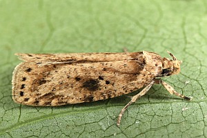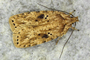 Zur Unterscheidung zwischen Agonopterix arenella und Agonopterix propinquella: Bei A. propinquella sind die Satellitenpunkte um den Mittelfleck schwach ausgebildet, die Art ist breitflügelig. Hilfreich ist die Größe: A. propinquella hat eine typische Sitzlänge von 9 bis knapp 10 mm, A. arenella aber etwa 12 mm oder etwas mehr [Forumsbeitrag von Peter Buchner].