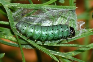 1-2: Frankreich, Alpes-Maritimes, Bézaudun-les-Alpes, 800 m, Raupe auf Seseli tortuosum, 31. Mai 2023 (fot.: Edith Grange), prep. Jean-Charles Grange