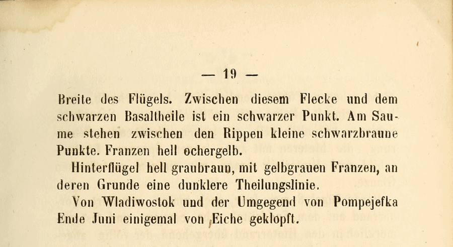 - Erstbeschreibung: Christoph, H. (1882): Neue Lepidopteren des Amurgebietes. — Bulletin de la Société impériale des naturalistes de Moscou 57 (1): 5-47.