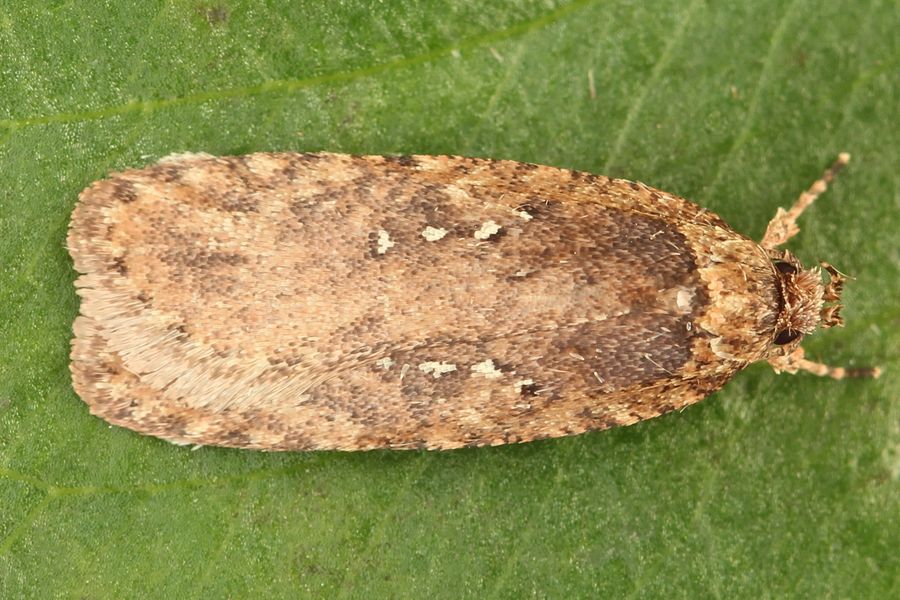 Agonopterix heracliana: Kopf deutlich heller als bei A. ciliella: grünbraun bis hell honigbraun. Nahtlinien nicht verdunkelt.