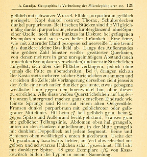 - Erstbeschreibung: Caradja, A. (1920): Beitrag zur Kenntnis der geographischen Verbreitung der Mikrolepidopteren des palaearktischen Faunengebietes nebst Beschreibung neuer Formen. III. Teil. — Deutsche Entomologische Zeitschrift „Iris“ 34 (1-2): 75-179. Dresden. [PDF auf zobodat.at]